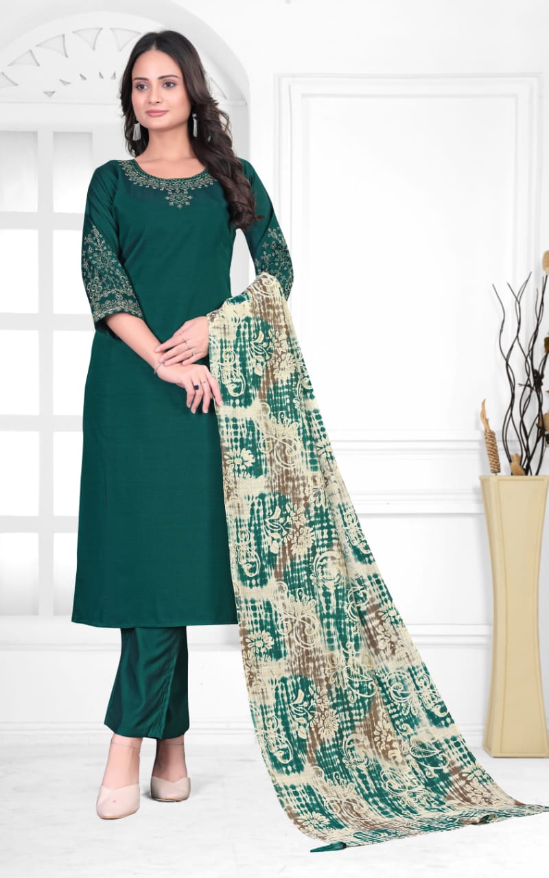 This elegant kurta set is crafted from premium Gadhuwal Silk fabric, offering a rich look with a soft and comfortable feel. The kurta features delicate embroidery on the neckline and sleeves, paired with a beautifully printed matching dupatta that enhances its ethnic charm. Perfect for festive occasions, celebrations, and special gatherings.